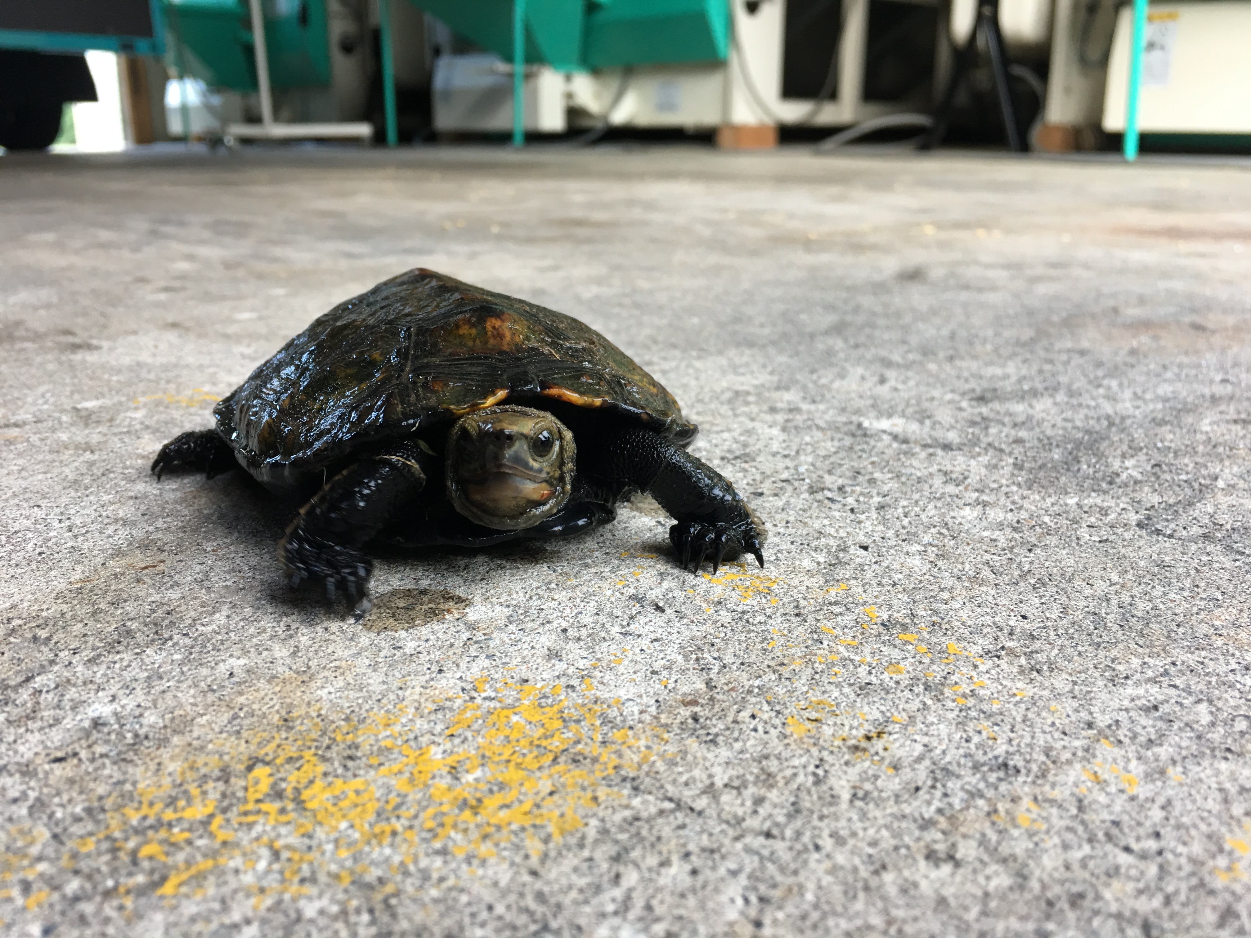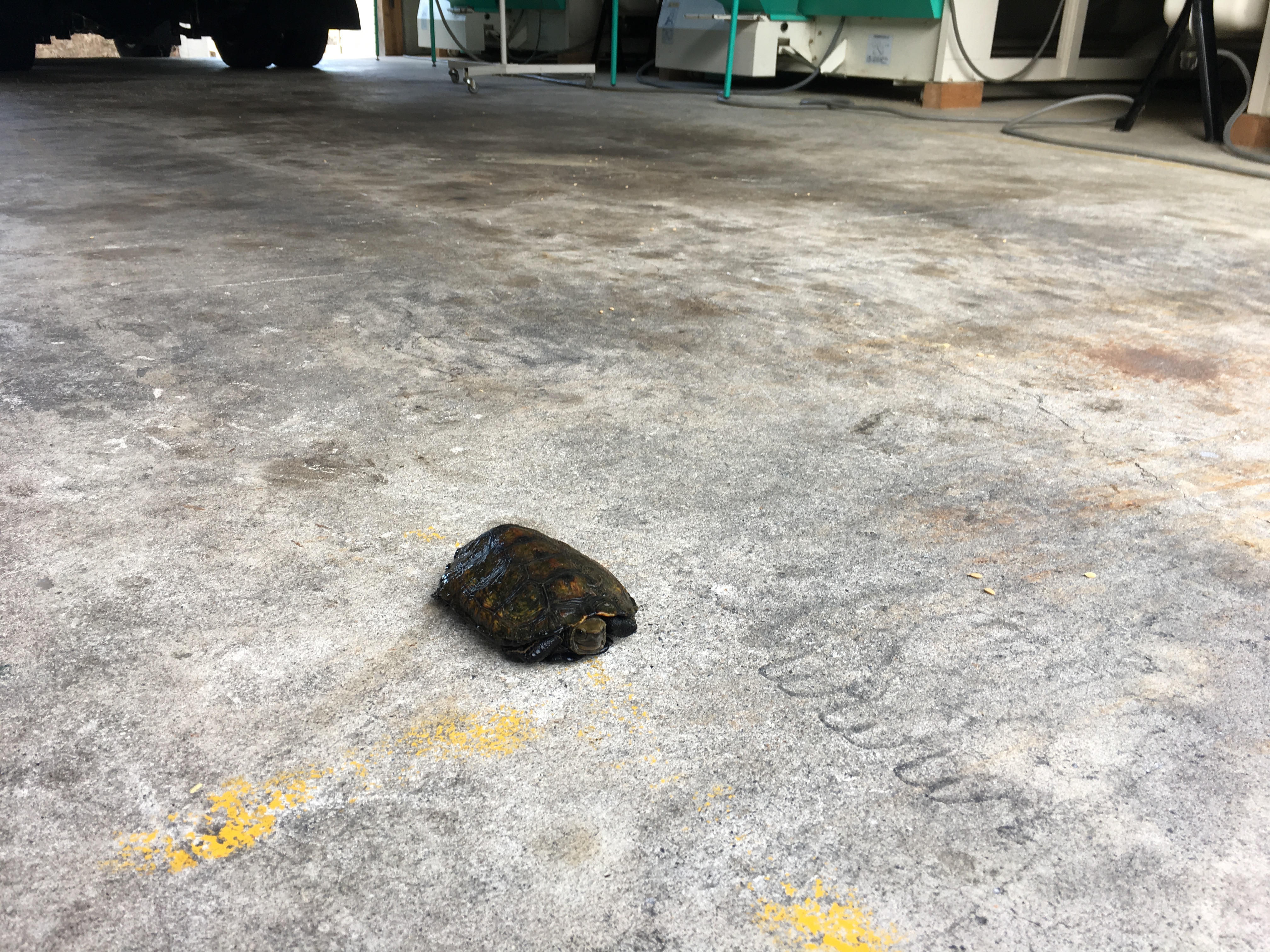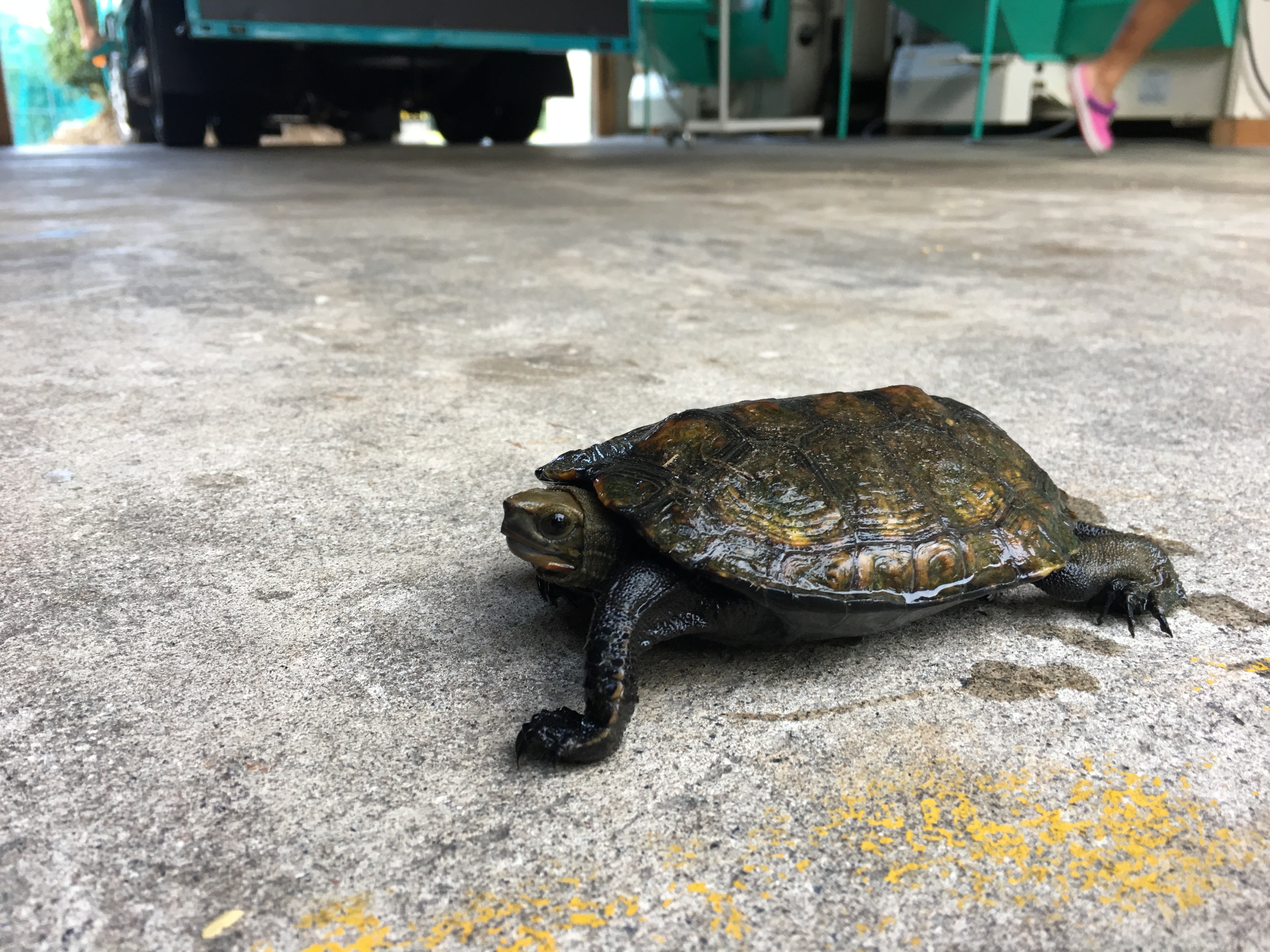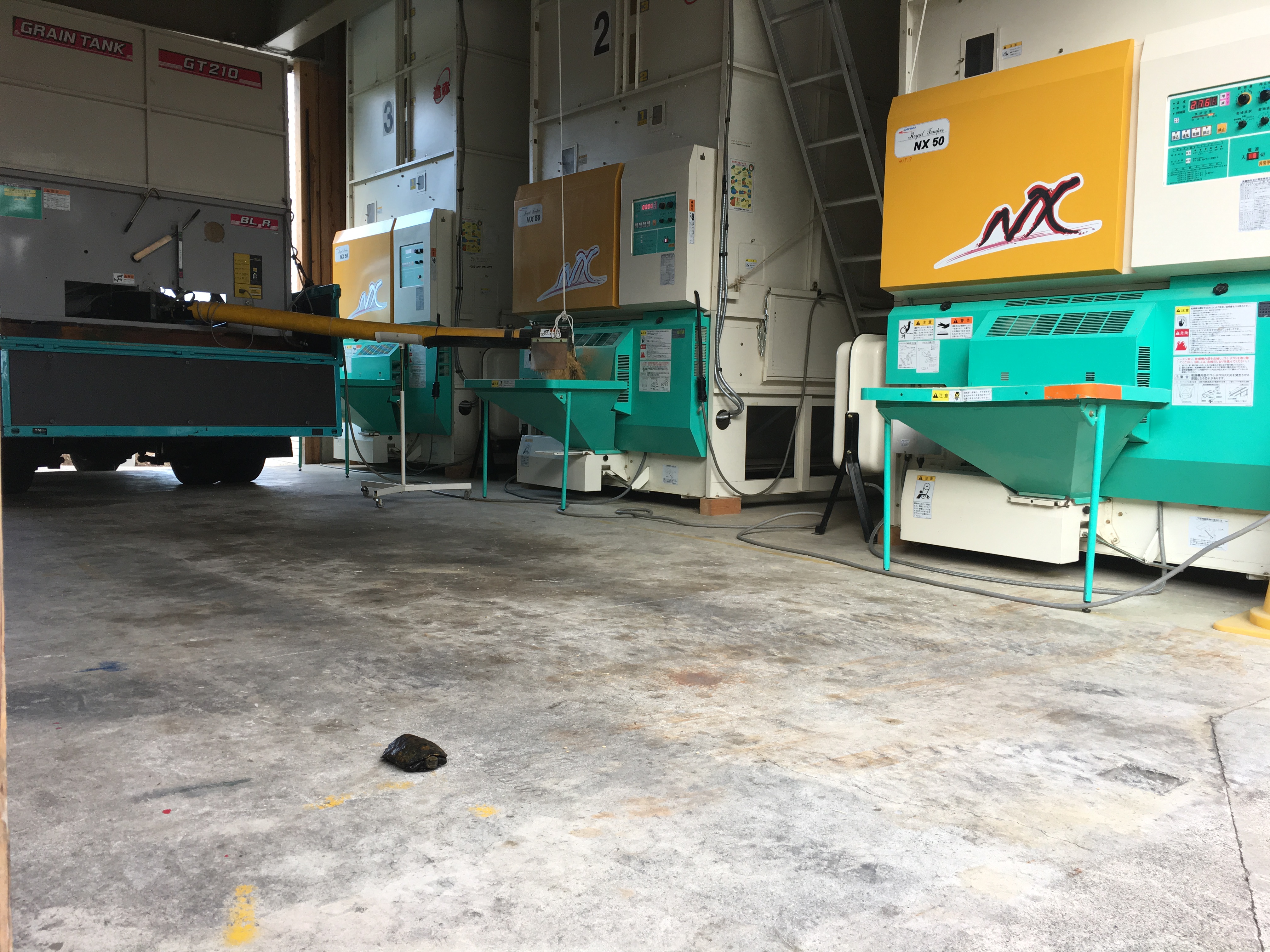 田んぼでは亀さんによく会いますが、まさか乾燥機の前を横断して行くとは…。