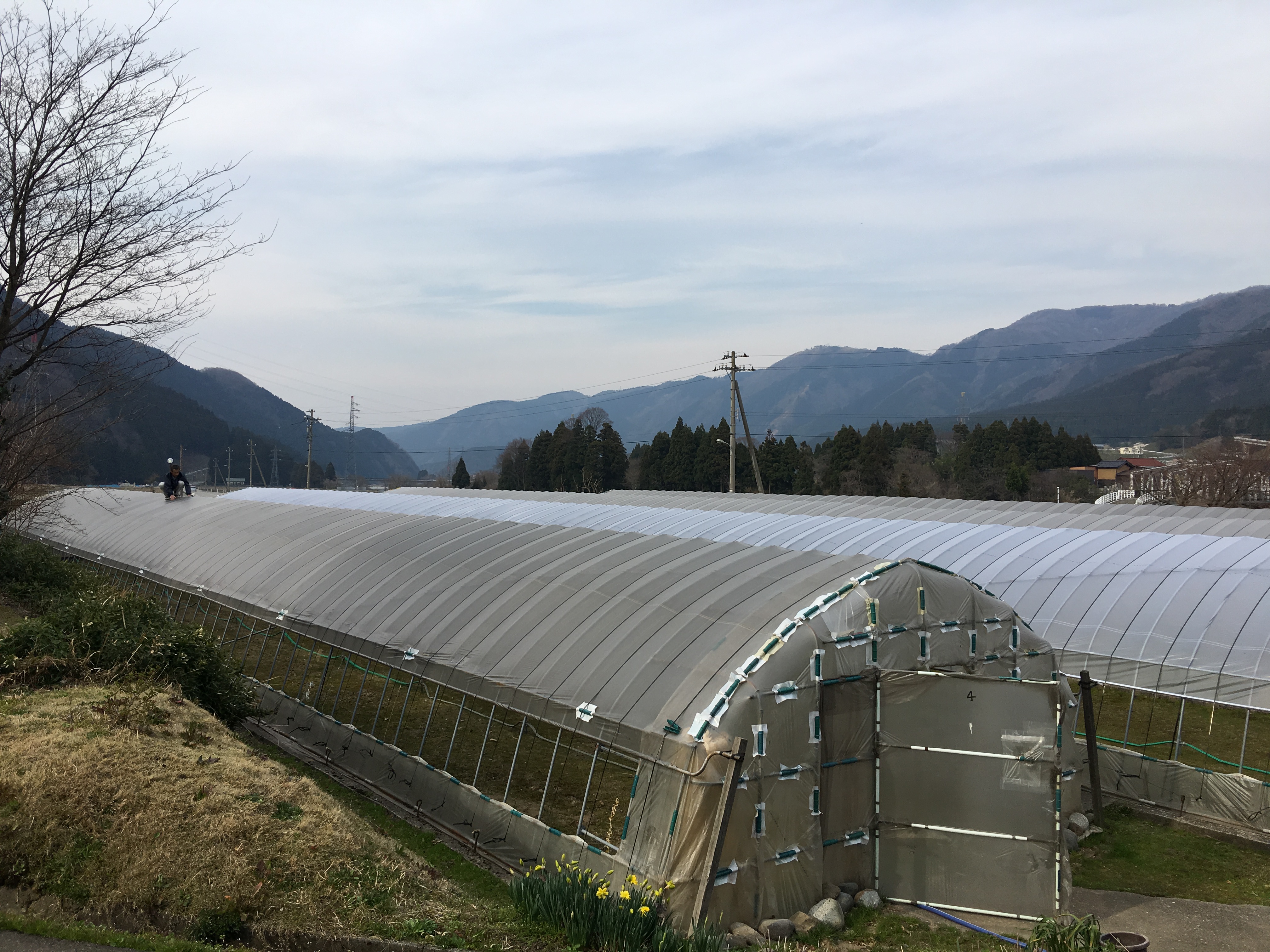 朝からお天気も良く、ようやくハウスにナイロン張りました‼︎