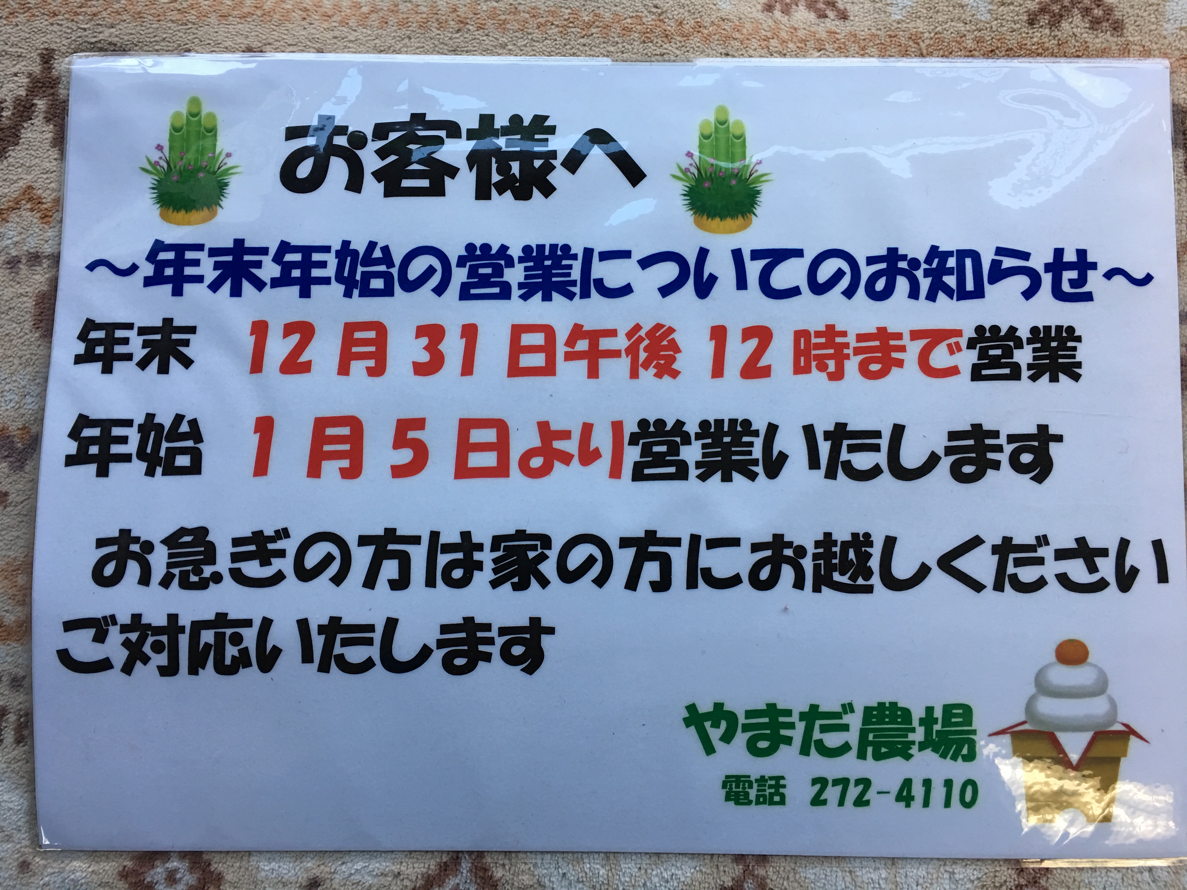 年内は31日の午前中まで営業いたしますのであわてずにご連絡下さいね〜‼︎